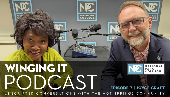 In the 12th episode of Winging It: Unscripted Conversations with the Hot Springs Community, NPC President Dr. Wade Derden sits down with the Chancellor of the University of Arkansas at Monticello, Dr. Peggy Doss. They discuss the partnership between NPC and UAM, the bachelor's degrees now available on the NPC campus through UAM, and her career in education.